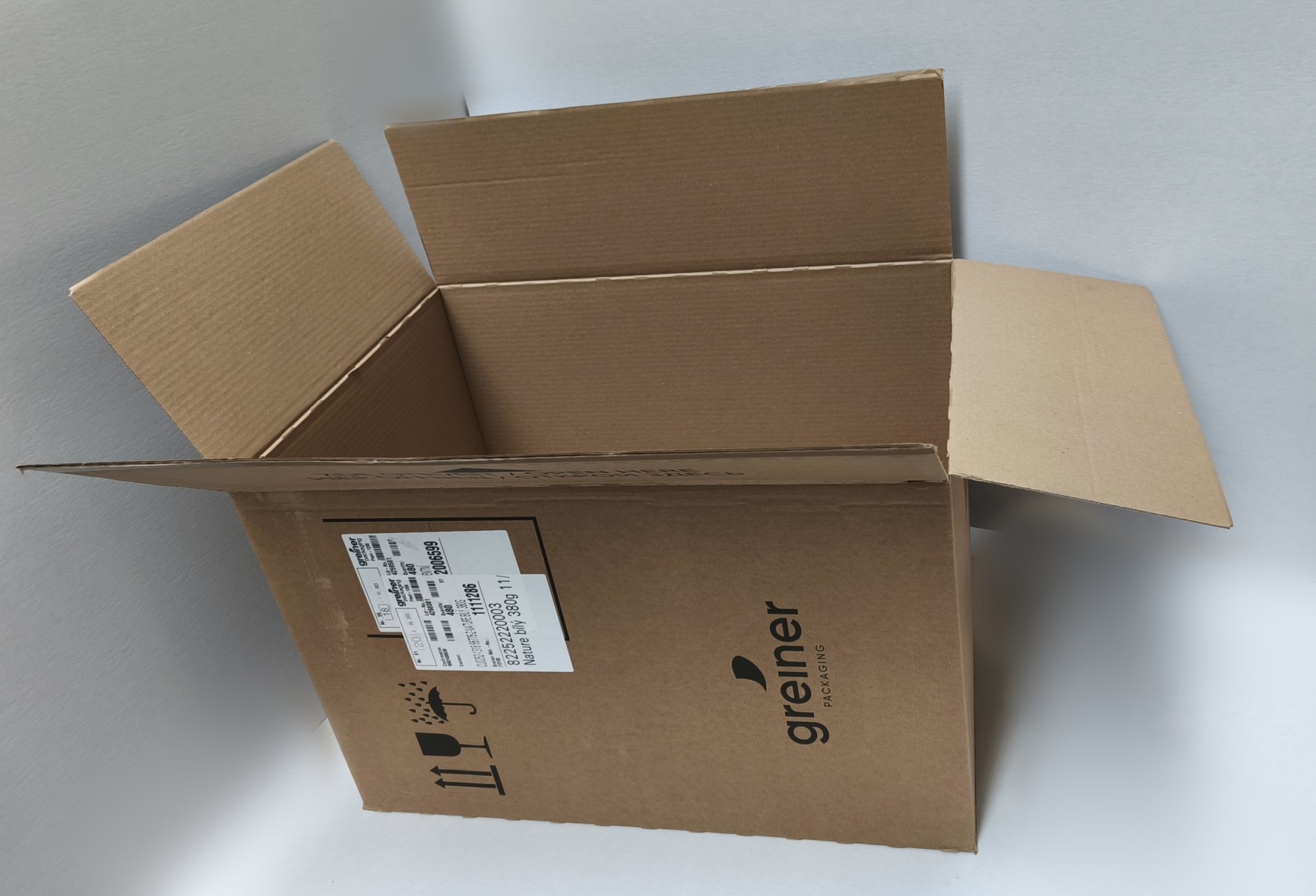 Krabice klopová , materiál 3vl HH, tisk greiner, použitá, na paletě 200ks